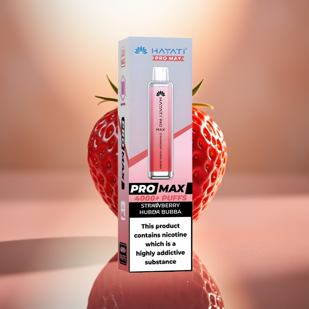 Hayati Pro Max 4000 Puffs – Mansikka Hubba Bubba, 1400mAh akku, 2ml säiliö