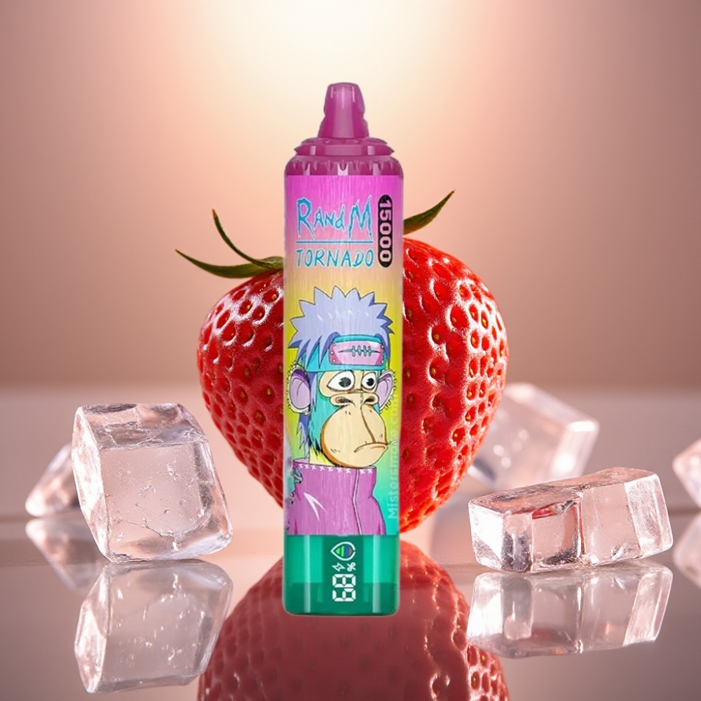 RandM Fumot Tornado 15000 Puffs LCD-Type-C Ladattava Jäähdytetty Mansikka